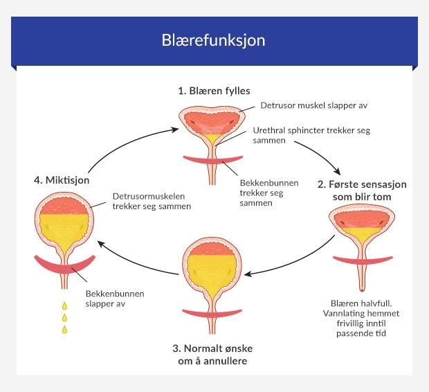 Det kan også være forårsaket av et problem med detrusormusklene dine der de ikke kan trekke seg helt sammen, noe som betyr at blæren din aldri tømmes helt. Dette kan skje hos personer med nerveskade eller som tar visse medisiner.