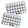 | Vit | Innehåller inga hormoner | 2 (piller 27-28) |